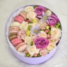 Коробка c цветами и пирожными макаронс №718 и другие товары категории "14 февраля / Цветы любимой" доступны в каталоге Студии цветов BUKETTO на Тверской, 9, рядом с метро Охотный ряд.